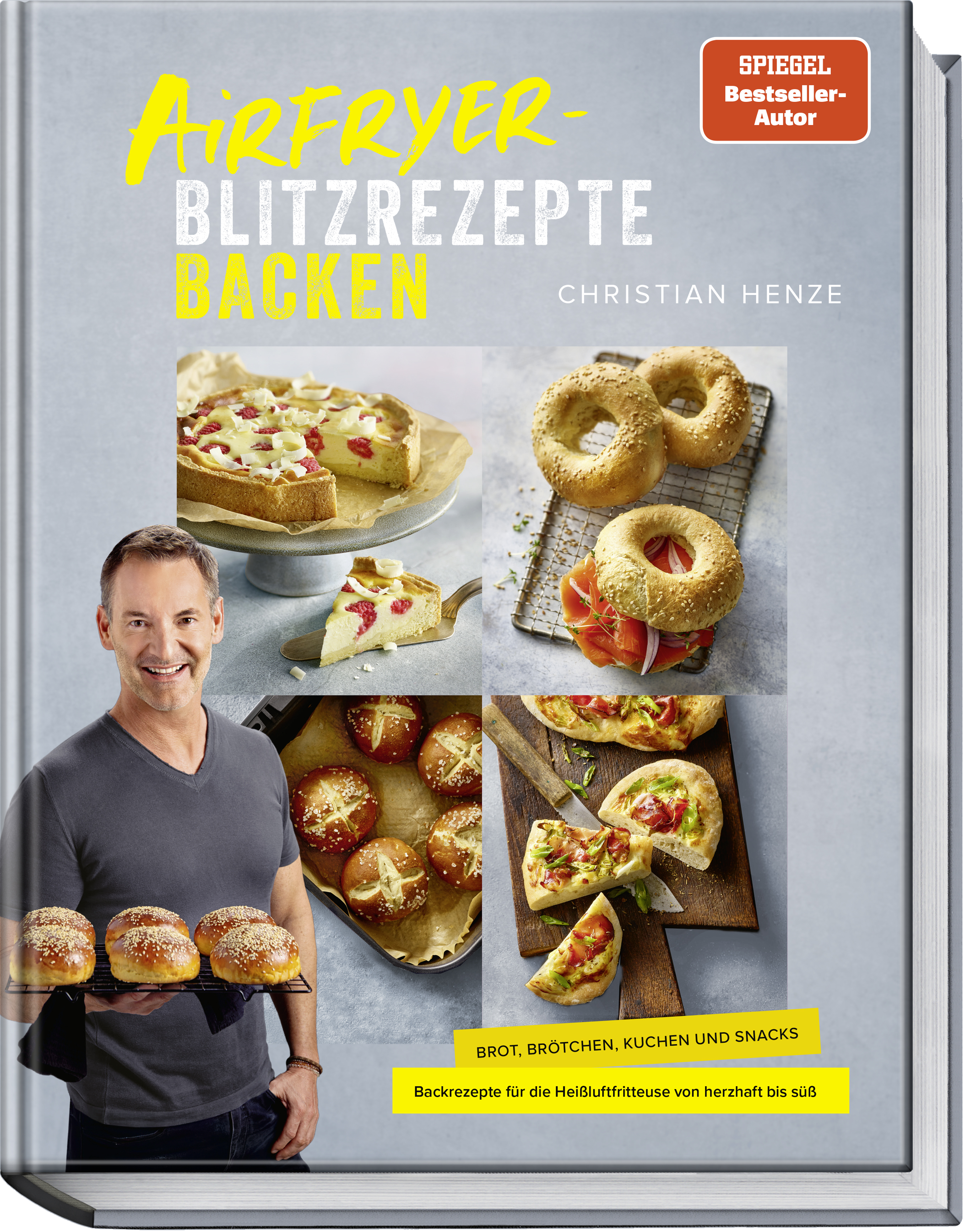 TV-Koch Christian Henze zeigt in seinem neuesten Airfryer-Rezeptbuch, wie einfach, schnell und gelingsicher Backen ohne Ofen sein kann. Mit über 70 vielseitigen Rezepten für die Heißluftfritteuse – von knusprigem Kartoffelbrot und spontanen Sonntagsbrötchen über herzhafte und süße Snacks wie Pinsa oder Pizzabrötchen bis hin zu Apfelkuchen, Churros und Zimtschnecken – bietet dieses Buch maximale Abwechslung. Egal, ob für den spontanen Besuch, den schnellen Snack für die Kids oder das geplante Abendessen: Hier gibt’s Rezept-Inspirationen für jeden Anlass.